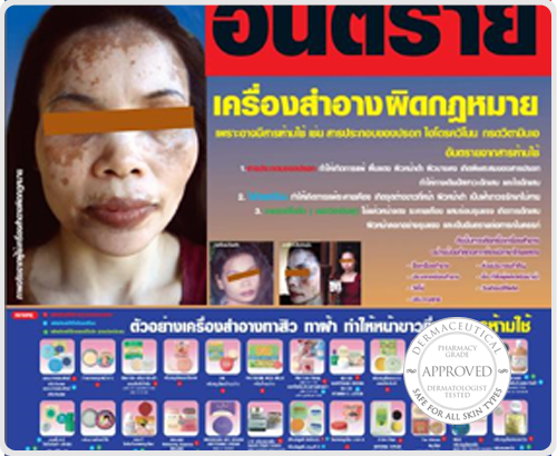 ร้ายแรงมาก ทำให้ผิวหน้าดำ ผิวบางลง และเมื่อสารปรอทสะสมในร่างกาย ทำให้ทางเดินปัสสาวะอักเสบ และไต