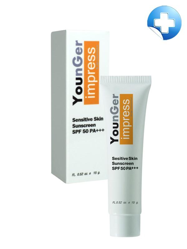 Younger Impress ครีมกันแดด สูตรสำหรับผิวแพ้ง่าย อ่อนโยนด้วยเทคโนโลยี NANO PARTICAL ปราศจาก Silicone อันเป็นตัวการสำคัญที่จะไปอุดตันในรูขุมขนทำให้เกิดสิว และยังไม่ทำให้หน้ามัน